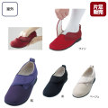 前足部はストレッチ素材で適度の伸び感。中程度まで外反母趾の方にも対応。ワンタッチで脱ぎ履きらくらく。
