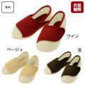 どこまでも止まる大きなベルトで着脱が楽!むくみのある方におすすめです。甲全体がマジック素材で甲幅調節可能。むくみや腫れがある時でもゆったりと、楽に履けるフィットタイプ。敷クッションには、低反発・衝撃吸収材「ピタフォーム」使用。足が疲れにくく、床からの冷えを防ぎます。撥水加工、手洗い可能(中性洗剤、保形後陰干)。