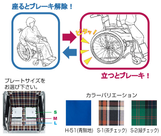 ブレーキのかけ忘れやタイヤの空気が減っていても、座面から立ち上がると車輪の中心部分でしっかりとブレーキがかかります。